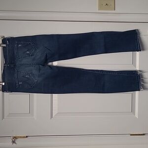 Mother Rascal jeans in Dark Graffiti with ankle undone step fray. Size 25. Slightly distressed.