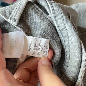 Mother Jeans “The Dropout” Style in Holy Smokes Grey Wash. Distressed look throughout jeans. Super soft and amazing fit