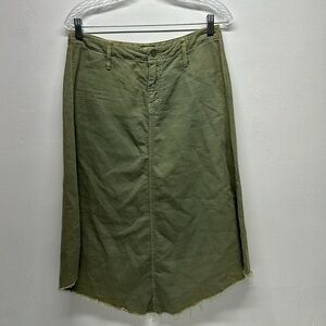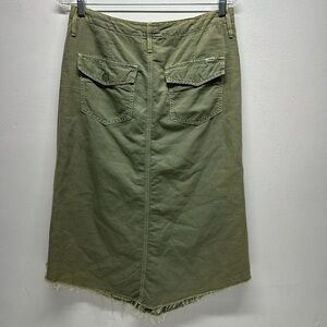 Mother The Misfit Midi Skirt Frayed Asymmetrical Hem Fatigue Sage Green Size 28