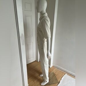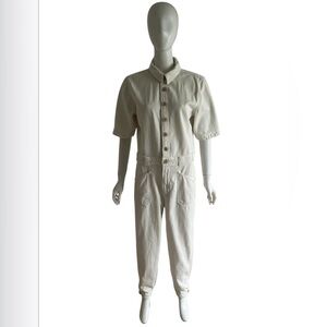 Mother Small The Elbow Grease Jumpsuit Button Front Short Sleeve Flood Ivory