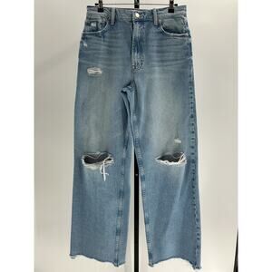Mother 'Spinner' Blue Cotton Destroyed High Waist Wide Leg Jeans Size 28