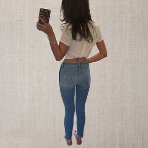 Mother Stunner Zip Ankle Step Fray Skinny Jeans In Light Kitty Racer. No flaws.