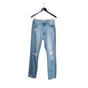 Keywords: Distressed jeans, ripped, frayed, raw hem, denim, light wash jeans, designer denim, Made in USA, revolve, Mother Superior,