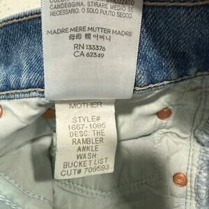 Mother Superior Ramble Ankle Jeans in Bucket List. Women's Size 26. Features rigid superior denim, light blue wash with fading throughout, high waisted / hi rise, straight leg, button fly closure, 5 pocket styling, belt loops, crop ankle length inseam. 100% cotton. Great used condition, no notable flaws. Retail $258.