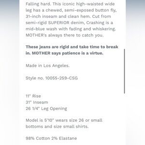 Mother Superior The Fly Cut Tomcat Roller Wide Leg Jeans Size 28 NWT