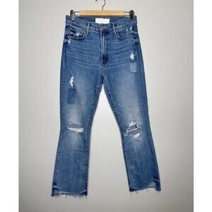 Mother Superior The Insider Crop Step Fray Kick Flare Jeans Distressed Size 27