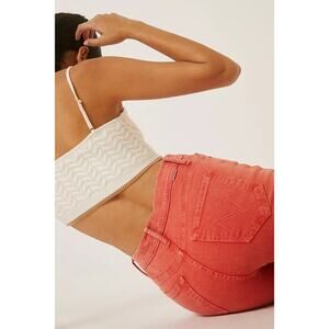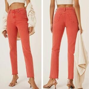 Mother Swooner Rascal Jeans Size 25 Flame Red Ankle Fray High Rise Straight Leg