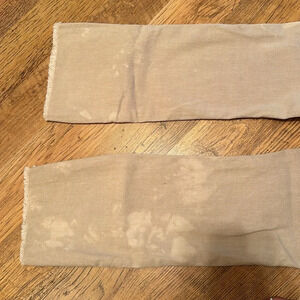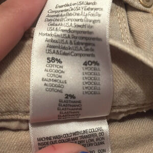 Details about the item: tan low rise boot cut jeans. have some stains on the bottom back side of legs.