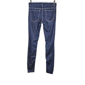 Featuring a cropped and finished ankle in a dark indigo wash with a skinny leg silhouette
