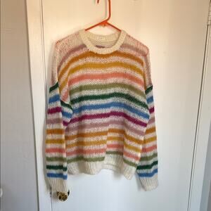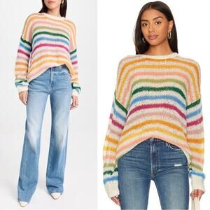 Mother The Biggie Striped Alpaca Pullover Sweater Size Small Colorful Rainbow