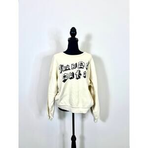 Mother The Drop Square Tuned Out Sweater White Small Knit Graphic Print Cotton