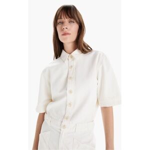 Mother The Elbow Grease Collared Jumpsuit Flood in Ivory Short Sleeve Sz S NWOT