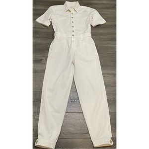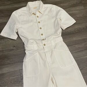 Mother The Elbow Grease Collared Jumpsuit Flood in Ivory Short Sleeve Sz S NWOT.