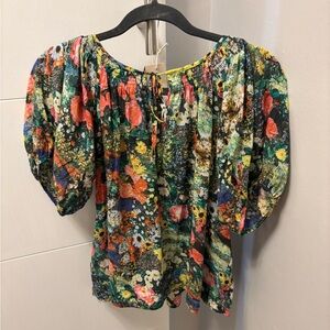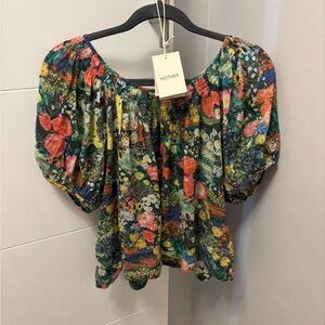 Mother The Garden Party Tie Back Peasant Blouse Floral Print Size Small
