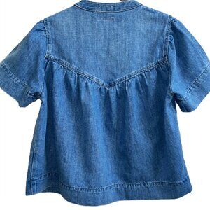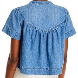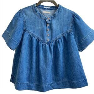Mother The Giggler Top Salt & Lime Blouse S Linen Cotton Button Henley Chic