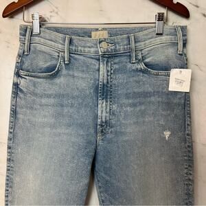 Mother The Hustler Ankle Chew Hem Ripped Knee Stretch Crop Blue Jeans 31 x 28