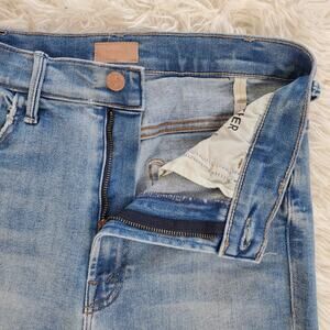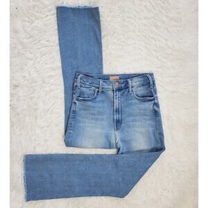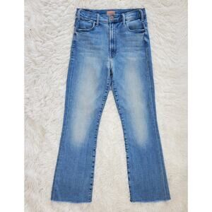 Mother Women's Hustler Flare Jeans 28 / 6 A retro-inspired favorite, these jeans feature a flattering high-rise fit with a chic ankle-length flared leg. Crafted from soft stretch denim, the Au Revoir wash is a light blue hue with a perfectly lived-in feel. Pair them with a fitted top and heels or sandals for an elevated casual look! High rise Belt loops Zip and button closure Straight, flared leg Frayed hem Au Revoir wash Style: 1117-686 81% Cotton, 11% Lyocell, 6% Polyester, 1% Elasthane Machine Wash Very good used condition. Normal wash wear. Rise: 10.5" Waist: 13.5" Inseam: 26" Ankle: 7" Aesthetics: Casual chic, Preppy, Stretchy, Distressed