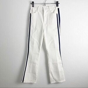 Mother The Hustler Ankle White Stripe High Rise Kick Flare Jeans Cotton Stretch