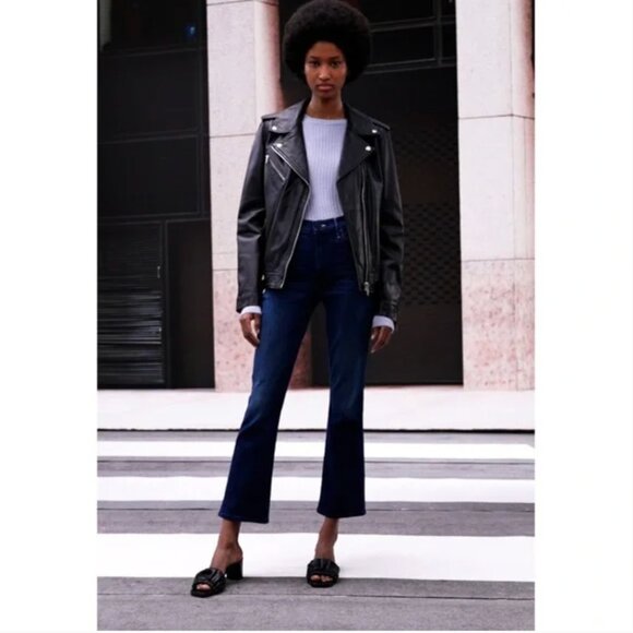 The Mother iconic high-waisted bootcut has an ankle-length inseam, clean hem and body-hugging fit. Cut from soft stretch denim, Cross Your Fingers is a deep blue wash with subtle whiskering and fading at the knee. Made in Los Angeles