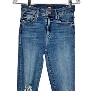 Mother The Insider Crop Step Chew Denim Distressed Jeans Size 25