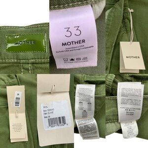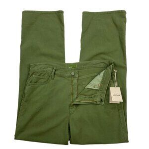 Mother The Kick It Pant 33 Olivine Green Twill High Rise Straight Leg Fall