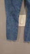 Chic blue cropped jeans with a distressed finish. Perfect for a casual, modern style.