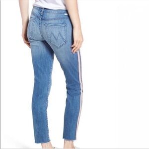 Mother The Looker Ankle Fray Thunderstruck Racer Pink Stripe Skinny Jeans 25