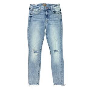 Mother The Looker Ankle Step Fray Jeans Cut Flowers Destroyed Frayed Hem Size 28