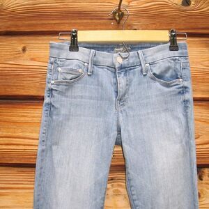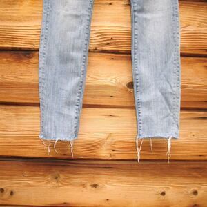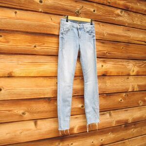 98% cotton, 2% elastane. 12" in the knee narrows to 10" at the leg opening. Slight whiskering along front pockets. Raw cut hem. Revolve Style No. MOTH-WJ311