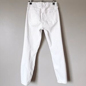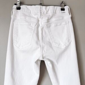 🧵 Details: Good gently worn condition, the looker style, cropped, slim leg, non distressed clean style, a little fabric pulling on front near crotch (photographed), stretch fabric, curved inset pocket style, zipper and button closure