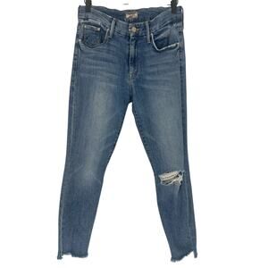 Mother The Looker Fray Ankle Step Fray Jeans in Exposed Secrets Wash.