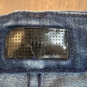 Brand details: Embossed black leather MOTHER back patch; M-shaped stitching on rear pockets; "DO YOUR OWN LAUNDRY" note on size tag
