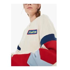 MOTHER "The Loosen-Up Crop" sweatshirt with embroidered chest logo and paneled sleeves