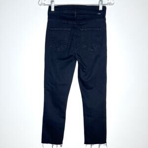 Mother The Mid Rise Dazzler Ankle Step Fray Jeans Denim in Not Guilty Black 24