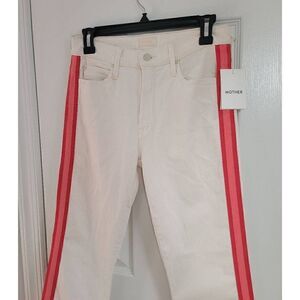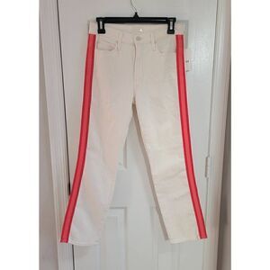 Mother The Mid-Rise Dazzler Crop White W/ Red Stripe Jeans 27
