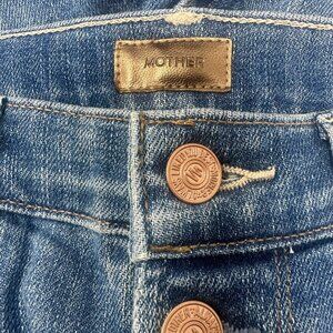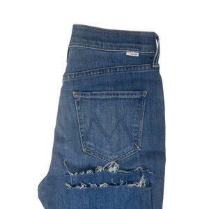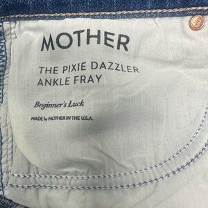 Mother The Pixie Dazzler Ankle Fray Jeans Size 27, In Beginner’s Luck Wash, Blue Denim, Stretch, Distressed, Whiskering, Fading