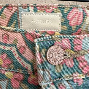 Mother The Rambler High Rise Ankle Straight Jeans in Under The Rug floral. As described by the brand. Zip Fly with button closure, 5 pocket silhouette. Tonal topstitching, copper-tone hardware, belt loops. Wide-leg silhouette. Fits true to size. High rise 11.25", ankle inseam 27.5", leg opening 17.5". 93% Cotton/5% Polyester/2% Elastane. Machine wash. Perfect condition.