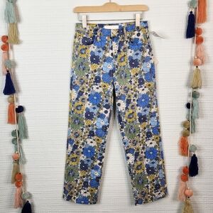 Brand new with tags! Groovy flowers pop against the light background on these casual-cool jeans designed with a cropped hem.