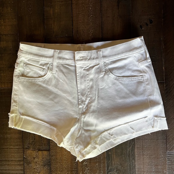 Mother white cut-off shorts, flipped raw hem. Never worn, no stains or marks. Size 28.