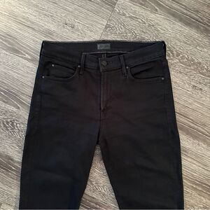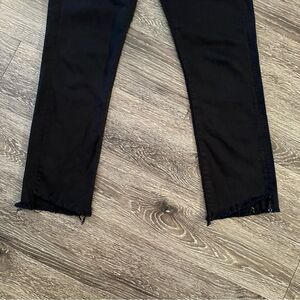 mid-rise straight leg with an ankle-length inseam and a raw, frayed hem. Cut from a recycled cotton-blend denim with a touch of stretch, Pitch is a deep black wash with a soft yet sturdy feel.