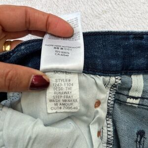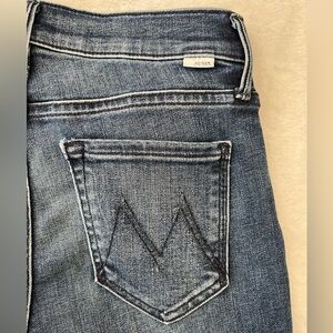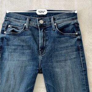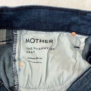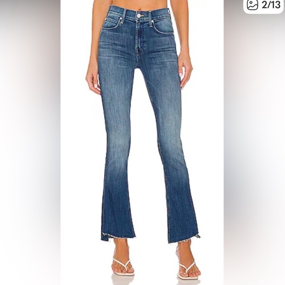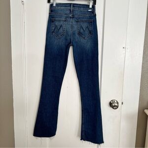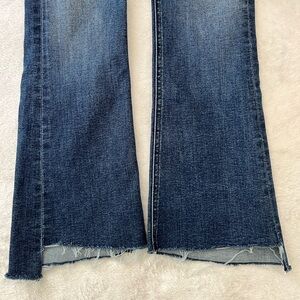 SEO Tags: mother jeans, runaway step fray, raw hem jeans, bootcut denim, mid rise flare jeans, premium designer denim, size 25 jeans