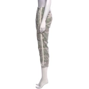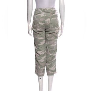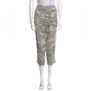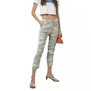 Mother The Shaker Chop Crop Fray Green Camo Stripe Linen Pants Desert