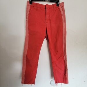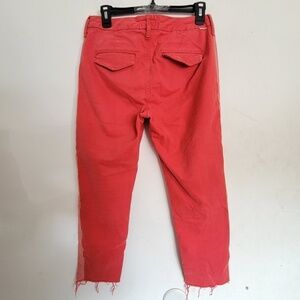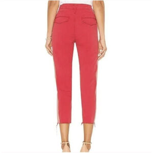 Mother The Shaker Prep Fray Red Salmon Pink Poppy Wash Denim Jeans Ankle Cropped Distressed