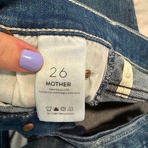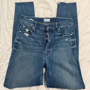 Mother The Stunner Ankle Fray Jeans Graffitti Girl Wash Blue Distressed Size 26