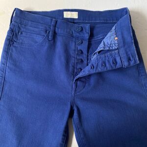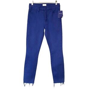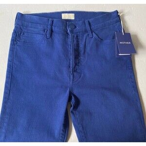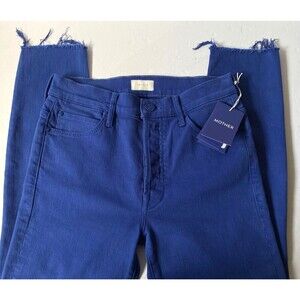 Mother The Stunner Ankle Fray Jeans Womens Size 26 Mazerine Blue Button Fly NWT