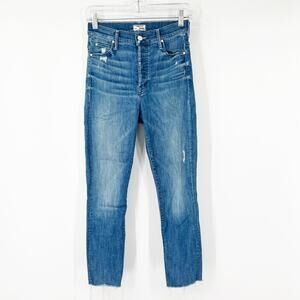 Mother The Stunner Ankle Fray Jeans in Graffiti Girl Button Fly Raw Hem