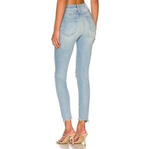 Brand: Mother Style: The Stunner Zip Step Chew Features: Pick your potion. A high-rise skinny jean with an ankle-length inseam and a step-hem that's chewed in the back. Crafted from stretch denim, Poisoned Petals is a light blue wash with fading, whiskering and distressing at the knees.