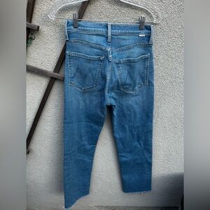 Frayed raw hem design at ankles