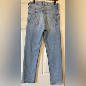 High-rise jeans with a straight leg, button fly and with a clean hem. Made from denim with a touch of stretch, Big Hair Don't Care is a light-blue wash with subtle whiskering and fading at the knees