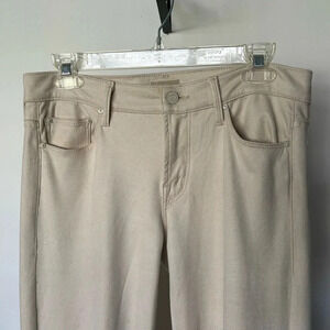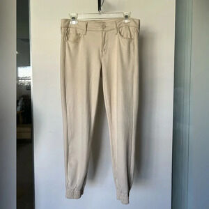 Mother The Trainer jogger pants. Color is Ivory. Zip closure. 5 pocket. Polyester spandex blend. Very soft and stretchy. Fabric feels like faux suede. Elasticized cuffs. So comfortable! Waist 15” rise 9” inseam 28”. Very good condition. Size 26